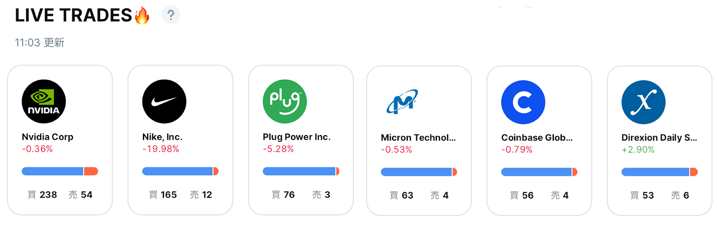 $NKE は先週決算発表を行い、結果が芳しくなく株価は下落しました。それを割安と感じた方が多く買い注文をしたと見られます。 $NVDA は相変わらず買い注文が多いですね。