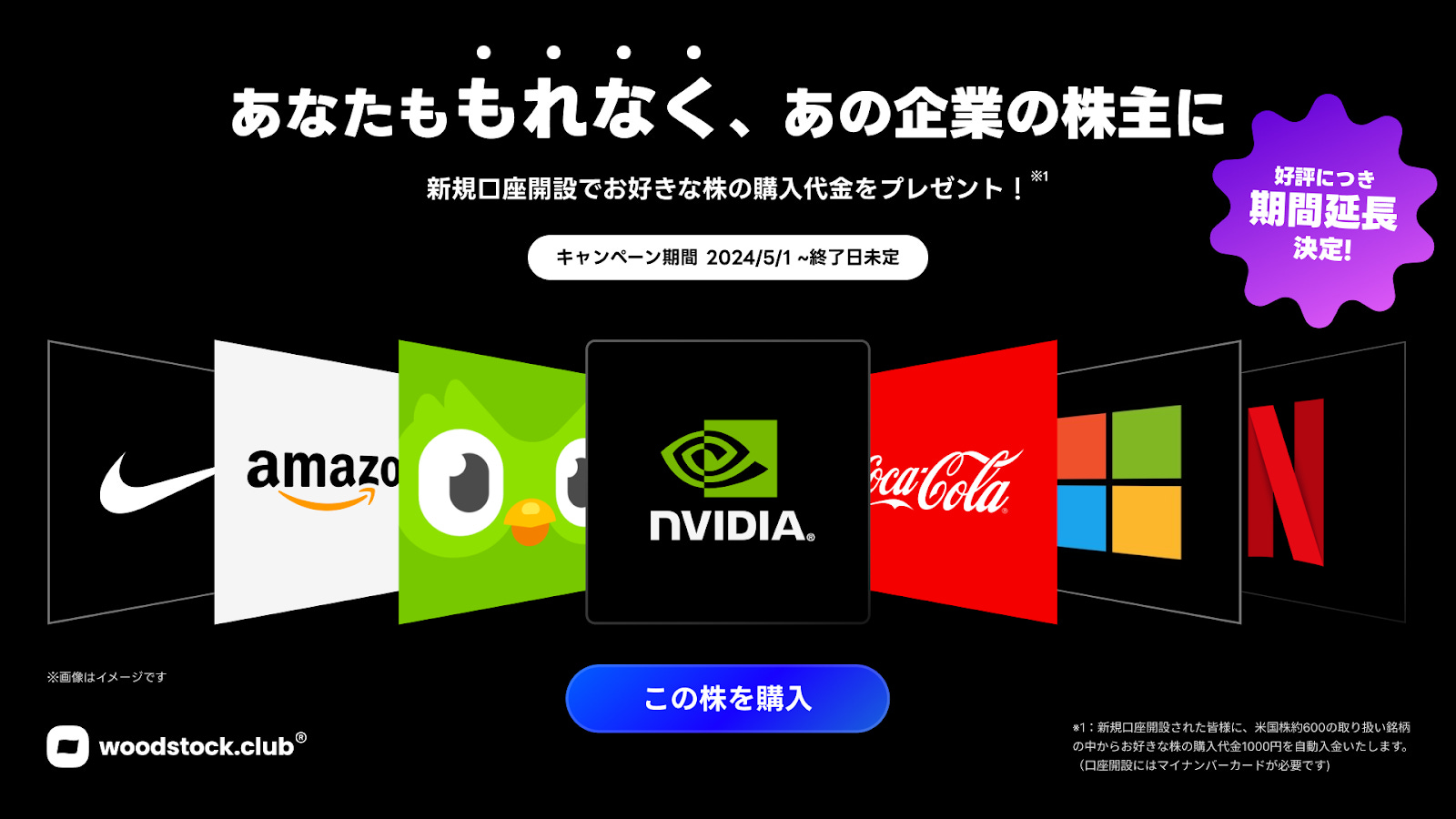 好評につき延長中!!お好きな株の購入代金をプレゼント!キャンペーン中🎁