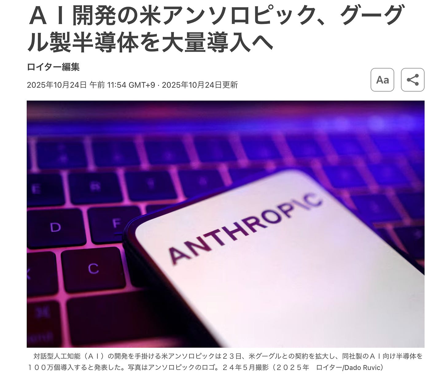 今年の10月には、Claude(クロード)で知られるAnthropic(アンソロピック)もGoogleと最大で100万基規模ものTPU利用契約を結ぶと発表しています。
