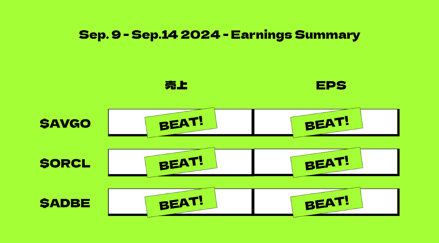先週決算発表のあった注目企業の決算結果をまとめました。アナリストの予想を上回ればビート、下回ればミスとなります!