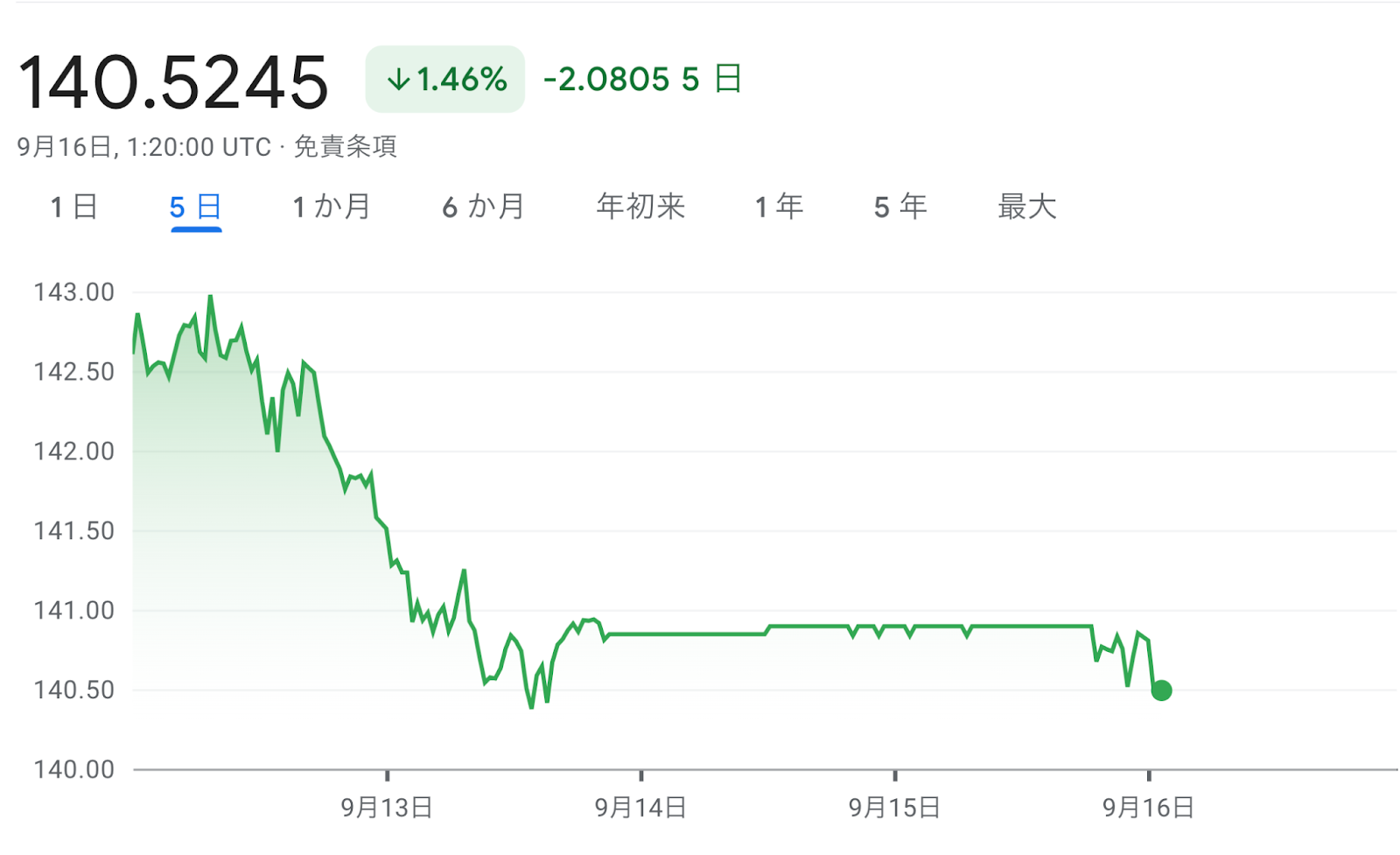 今週のFOMCで0.5%の利下げが決まれば、ドルは140円を割り込む可能性があると、 ジェフリーズ・ファイナンシャル・グループのグローバル為替責任者、ブラッド・ベクテル氏は予想しているそうです。もしこの水準まで円が上昇すれば、昨年の7月以来となります。