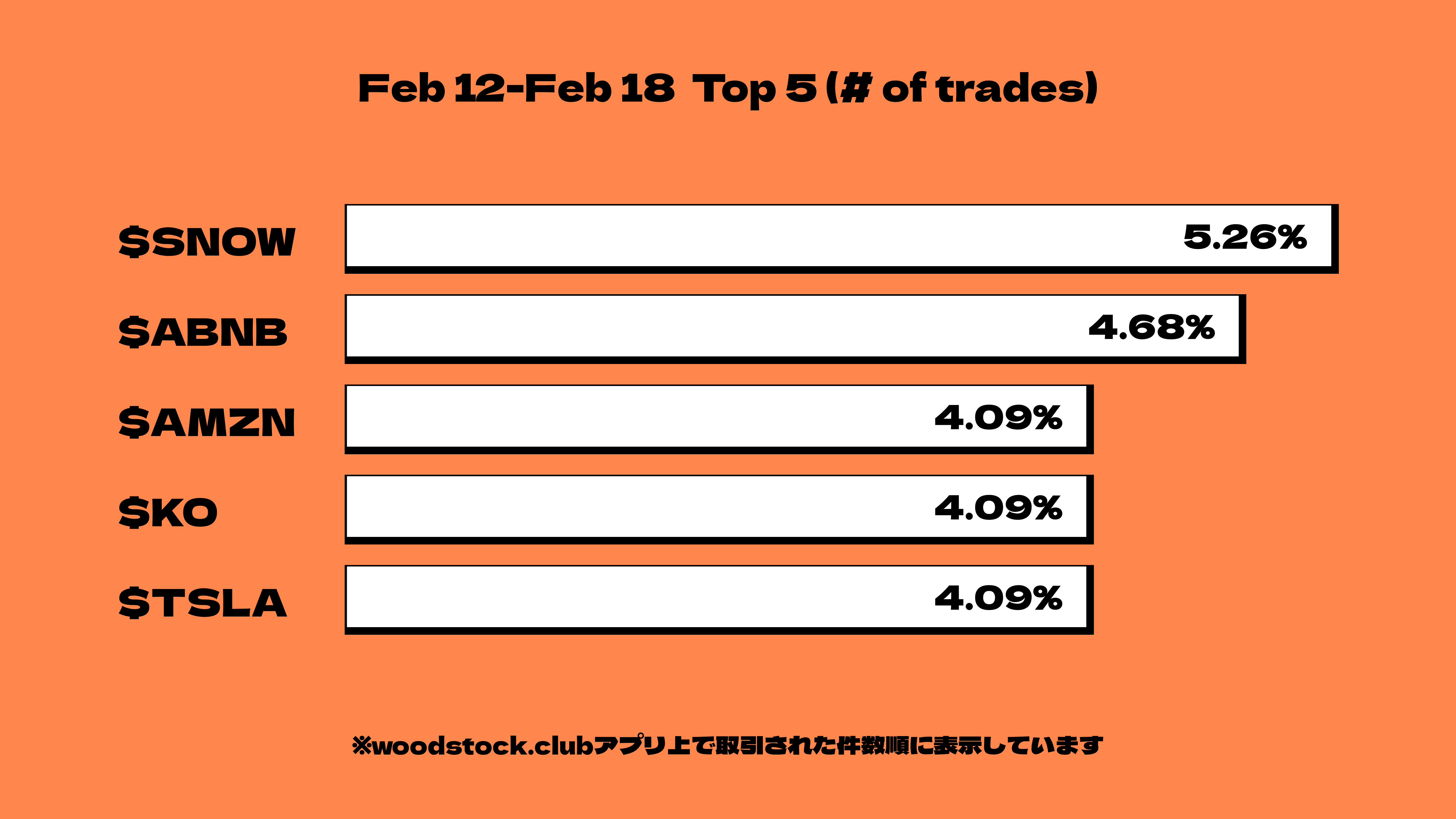 Woodstock.clubアプリ上で、先週(2/12-2/18)売買された銘柄ランキングはこれだ!