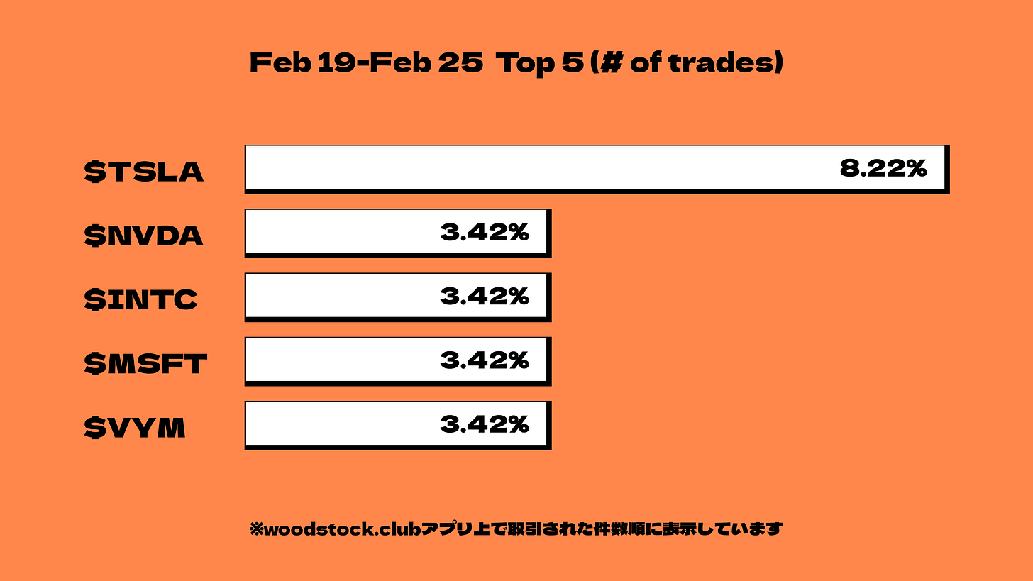 Woodstock.clubアプリ上で、先週(2/19-2/25)売買された銘柄ランキングはこれだ!
